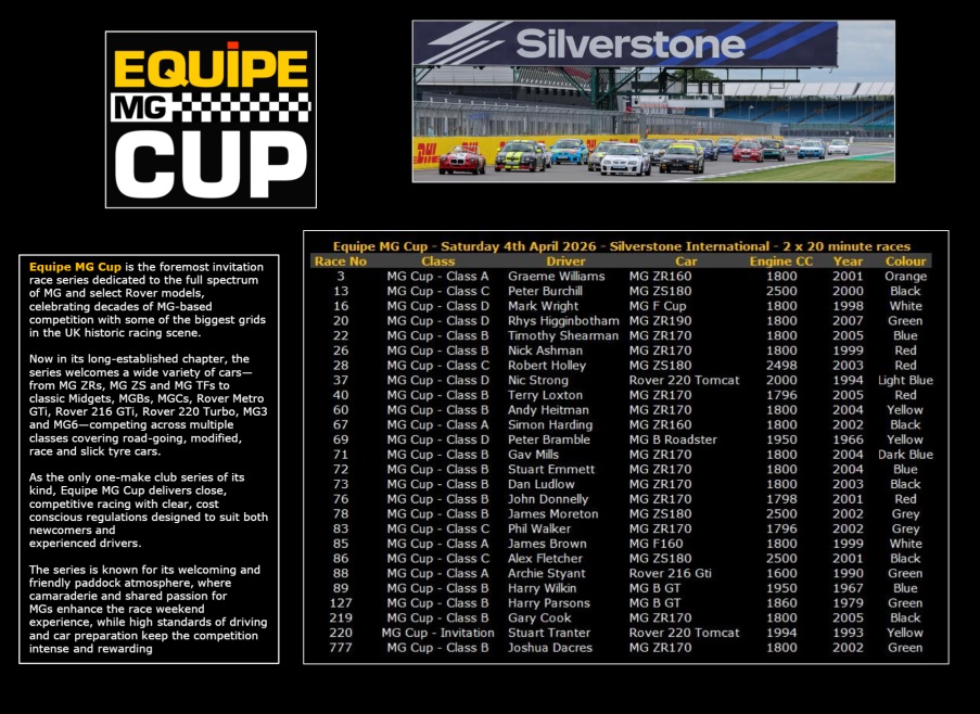 Home of MG Rover Club Racing
