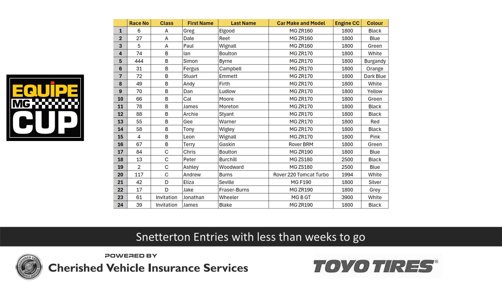 Fergus Campbell joins us once more for Snetterton, the freshly rebuilt car is in class B. He should be in the mix. With registered competitors in 5 classes we are the home of MG Rover Motorsport, what are you plans for 2025?